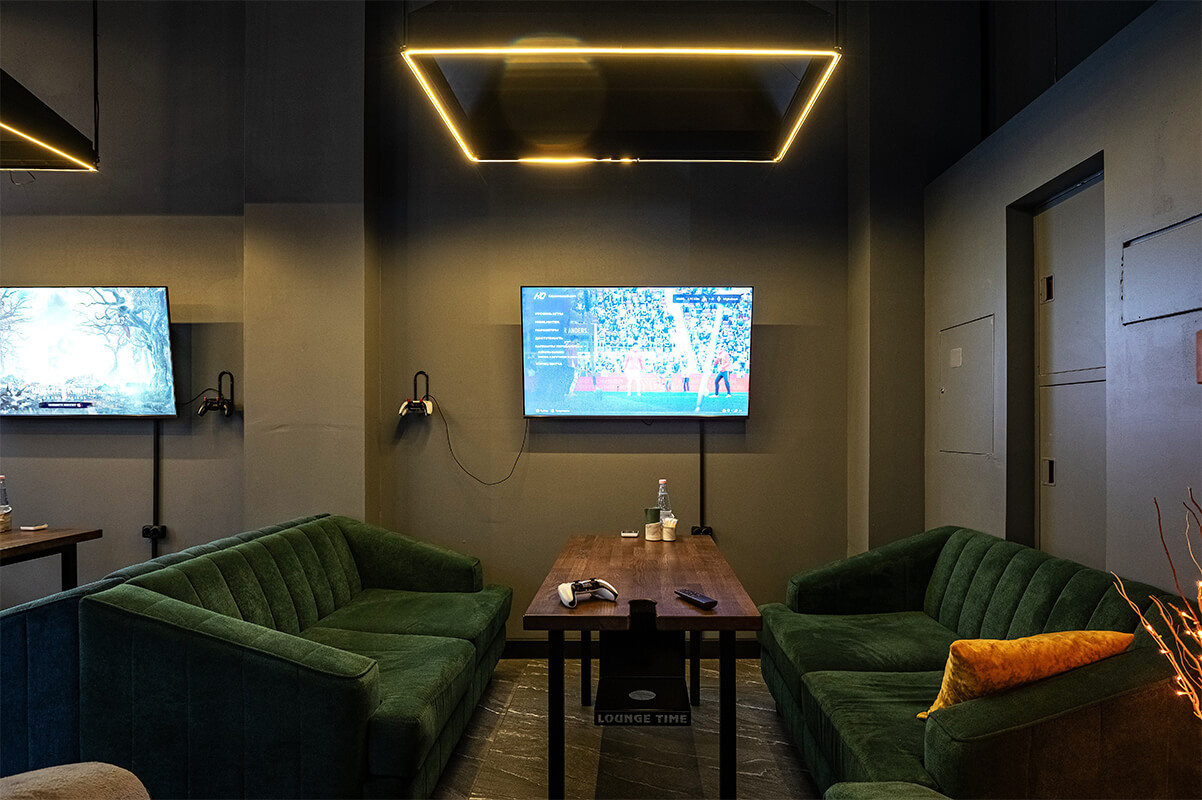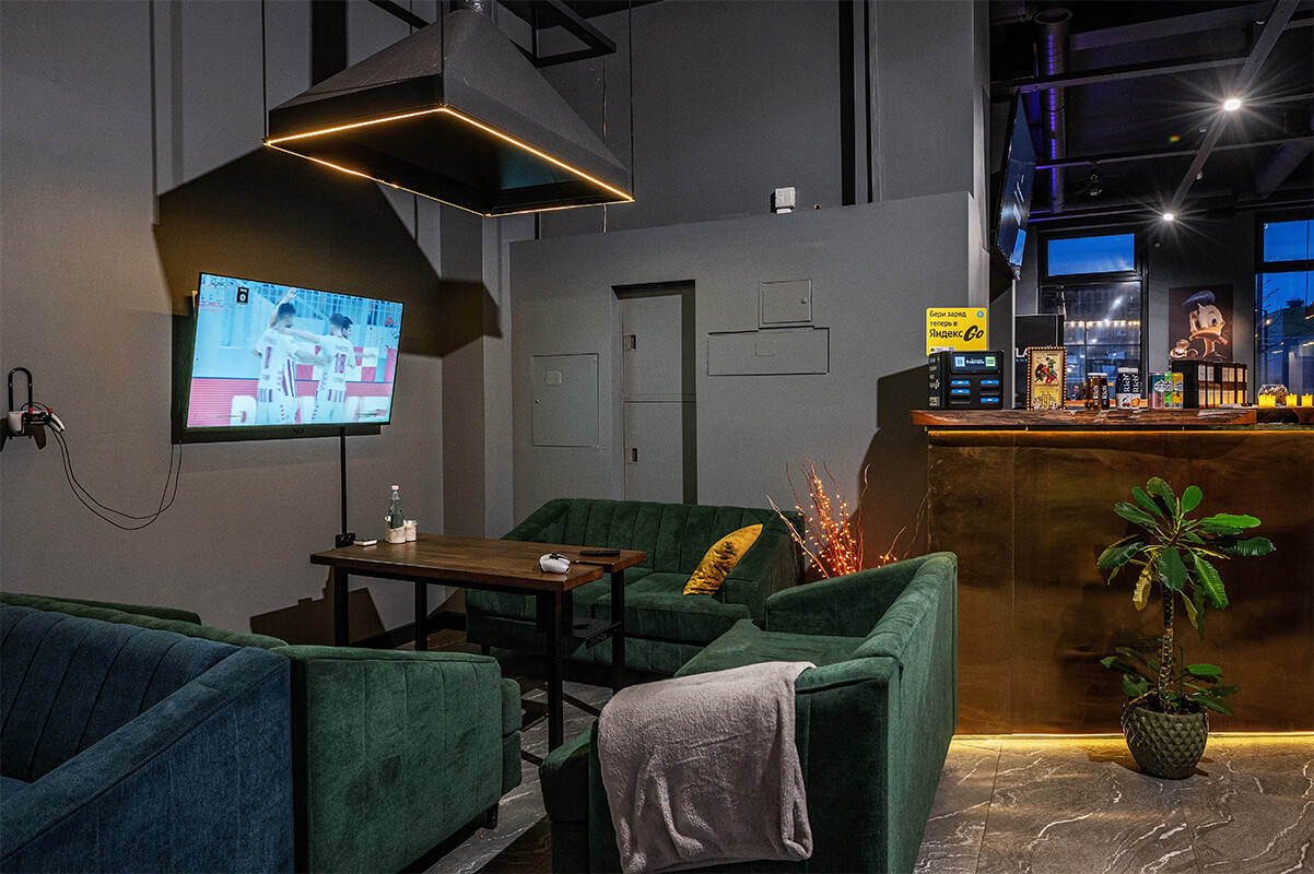 Мягкие диваны, приглушенный свет и отличная музыка, есть PS5 и настолки – здесь можно расслабиться на 100%