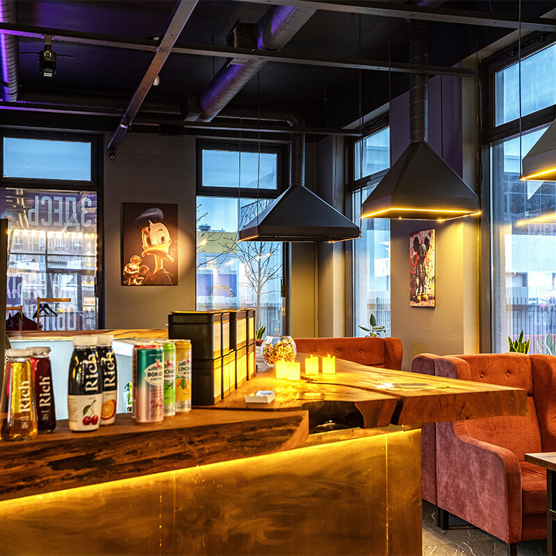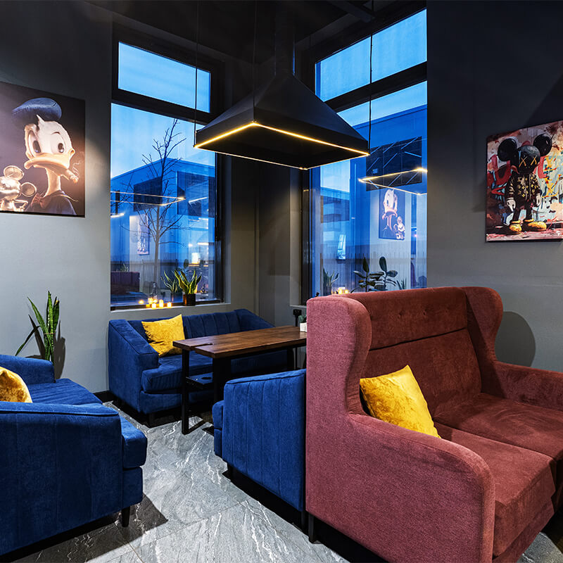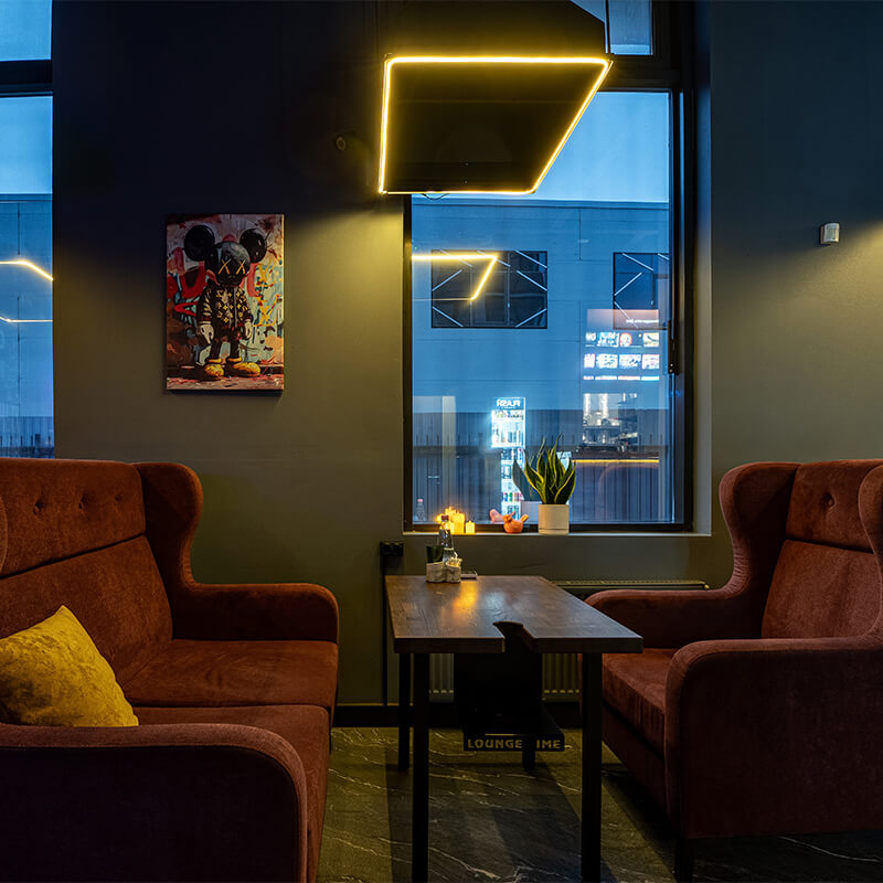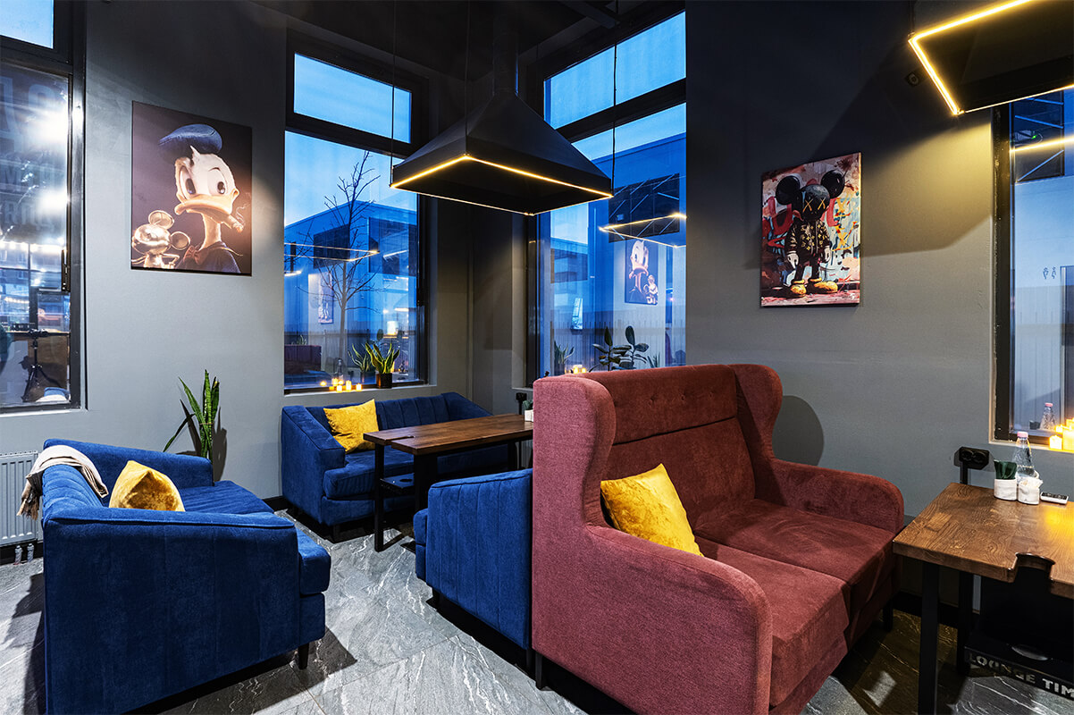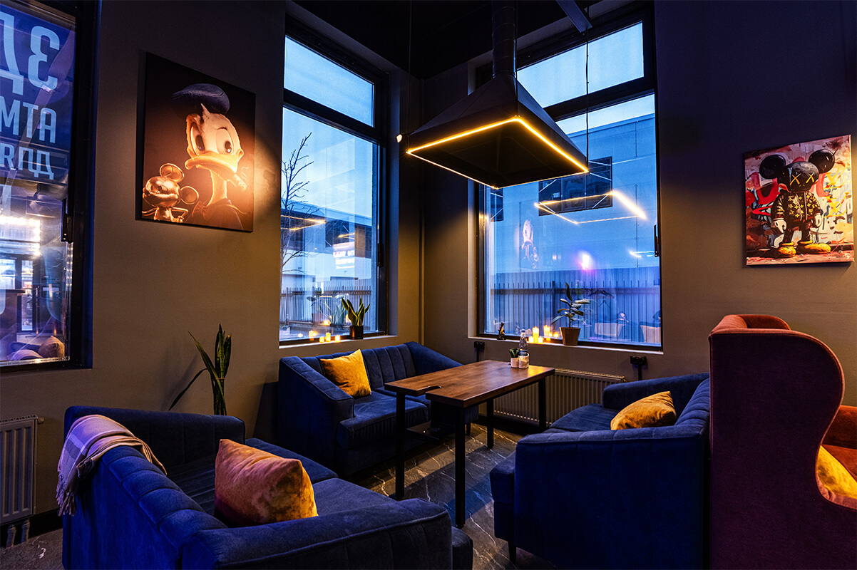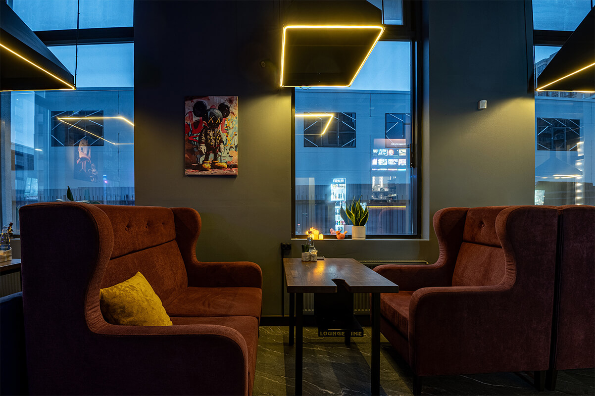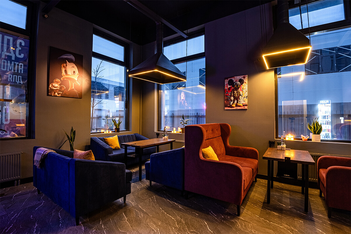 - Комфортная атмосфера — уютные зоны, стильный интерьер и качественная музыкальная подборка